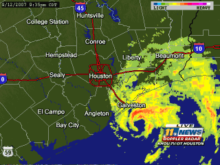 " Tropical Storm Humberto has turned slightly east, reducing the threat of heavy rain for most of Southeast Texas. A tropical storm warning remains in effect for coastal counties. A flash flood watch remains in effect for Galveston, Chambers and Liberty counties through Thursday morning."